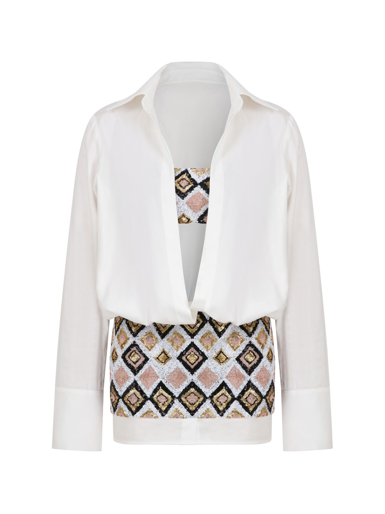 Mosaic ethnic pattern sequin mini white short Gypsy Dress with patterned bralette.